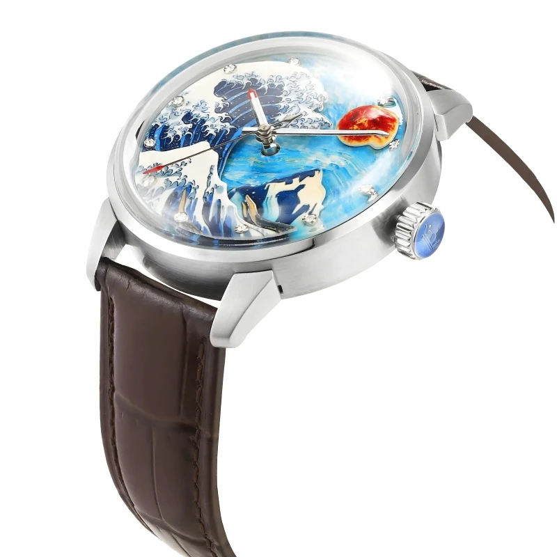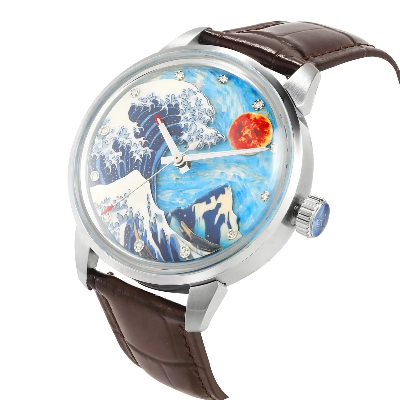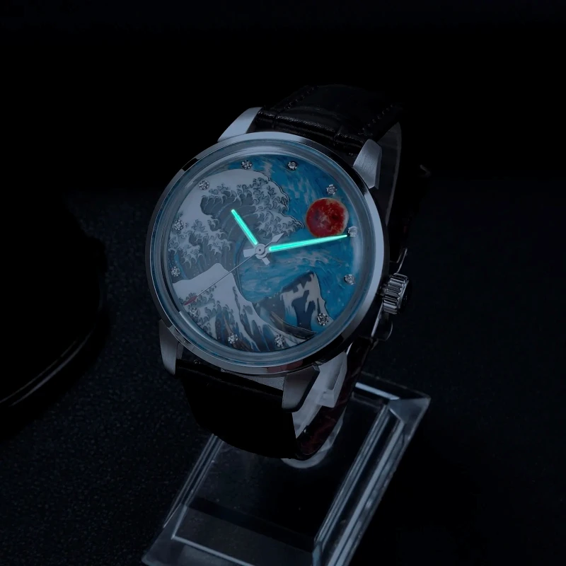 High Quality Sapphire Custom Wave Style Super Luminous Luxury Leather Watch Band Japan Automatic Mechanical Watch Manufacturers